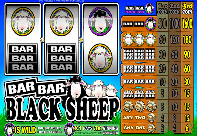 About the Bar Bar Blacksheep SlotThe Bar Bar Blacksheep slot a 3 reel slot game from Microgaming and as you can see it is built around a Sheep type theme. The reel symbols include a White Sheep, a Single Bar, Double Bar and a Triple Bar and the jackpot symbol is of course the Black Sheep symbol.