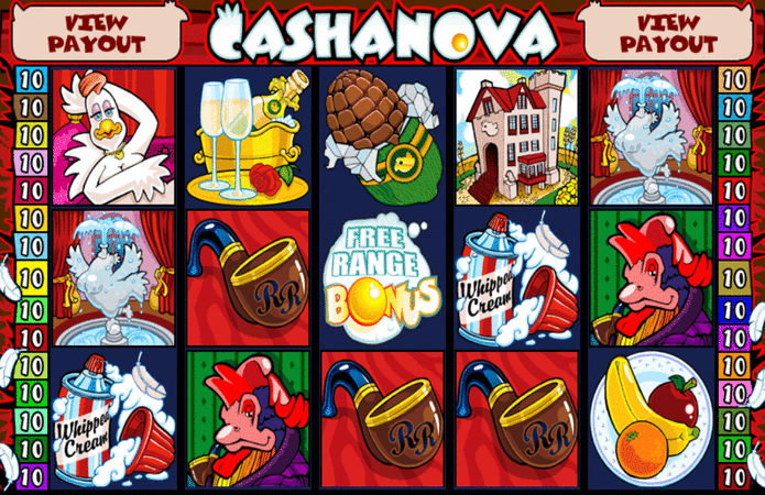 The CashaNova slot machine is one of our featured New Slots and this one comes with 30, it is set around a farm yard and features a rather horny Cockerel who is after the affections of the Hen, all manner and fun and games will entail as you play its bonus games, will the Cockerel manage to woe the Hen, well dear reader that is up to you and you alone so go on play cupid and make that love happen!