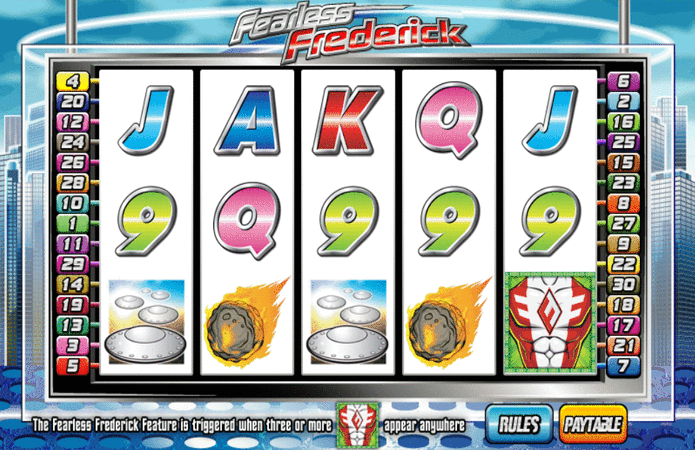 Bonus Features on the Fearless Frederick SlotAs the Fearless Frederick slot machine is a bonus video slot game it has Bonus Features, to be awarded them you first need to spin in anywhere in view, 3 or more of the Torso symbols and once you do you will have to pick a deed for Fredrick to perform you could be awarded either Free Spins or a cash prize if he achieves it!